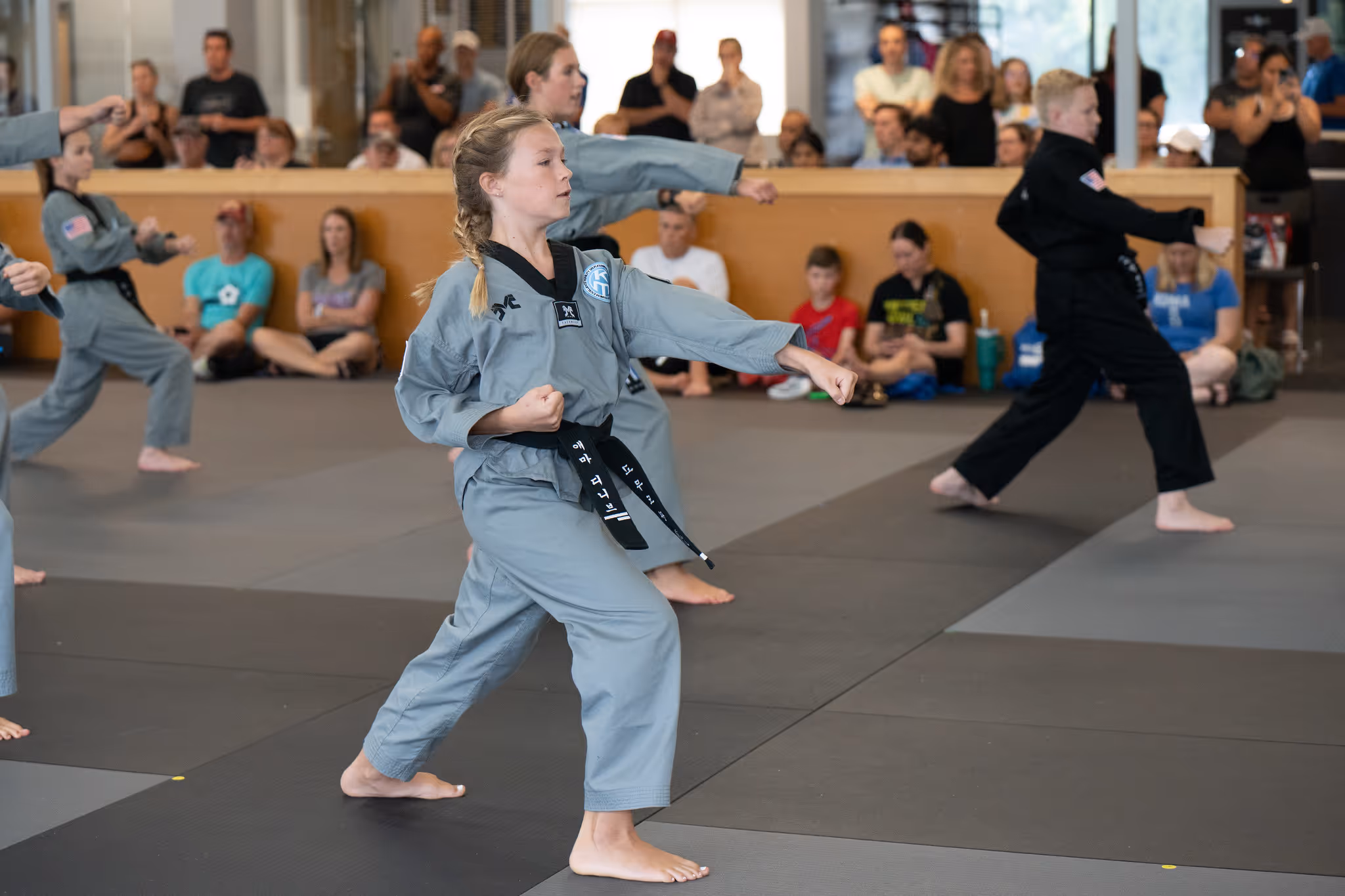 To advance in belts we hold Belt Assessment events where students perform their skills in front of their peers and an audience. While children can’t fail the belt assessment, we believe that this helps build confidence in themselves and teaches them that it’s okay to mess up as long as they are trying their best.